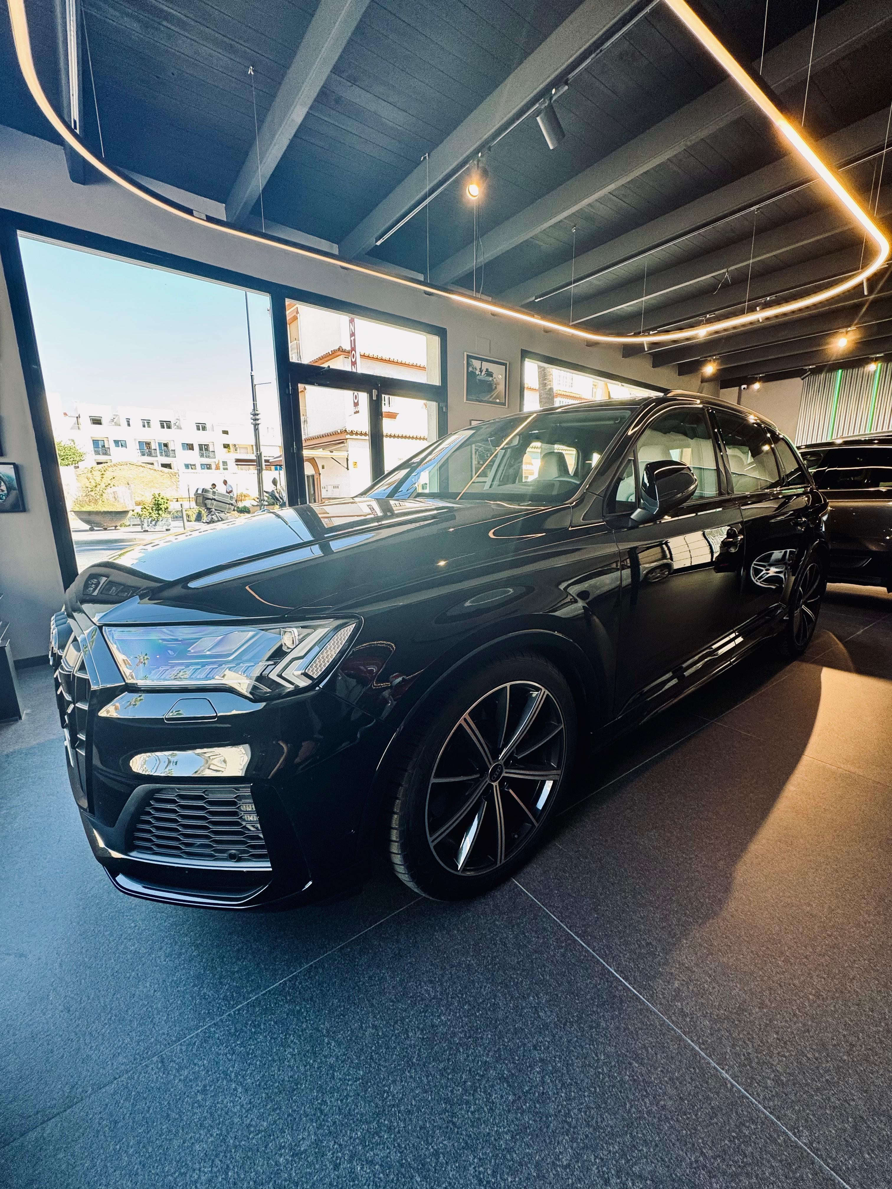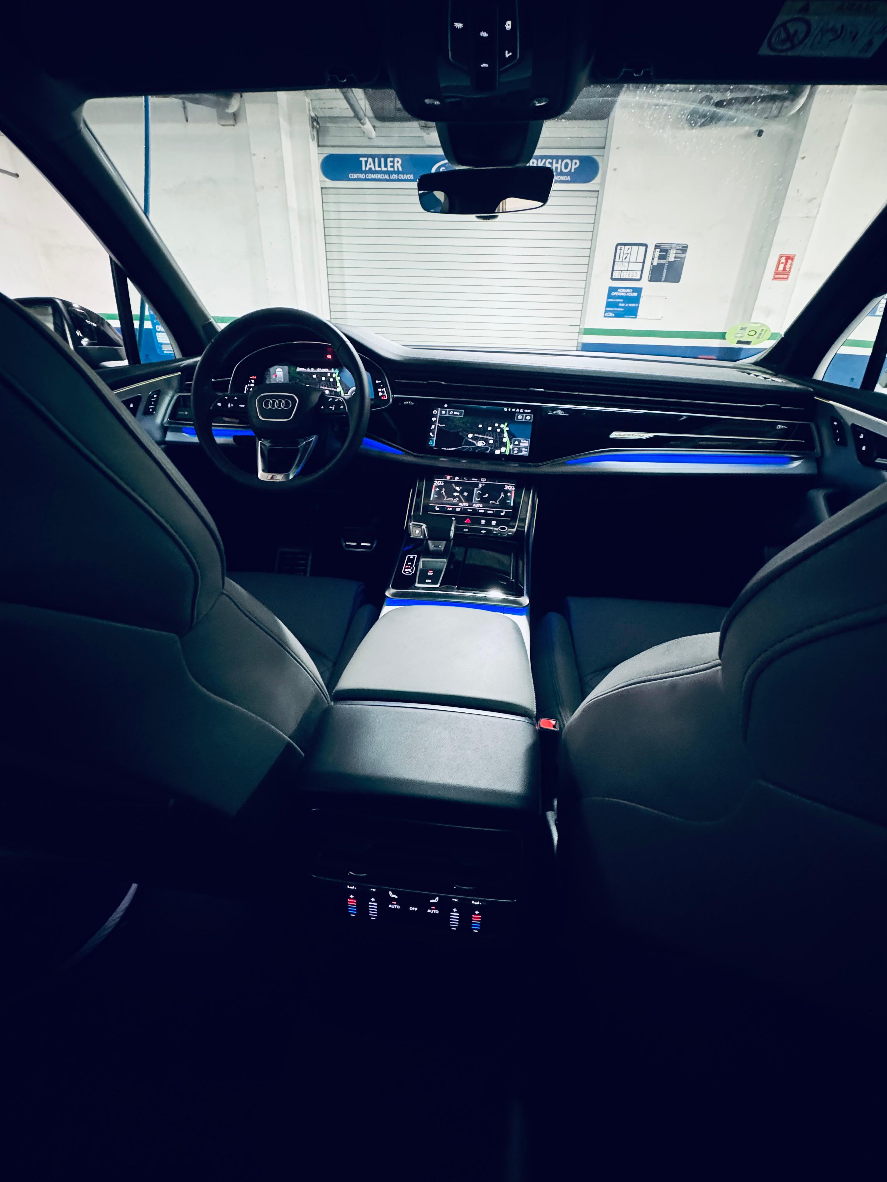 SUV deportivo de lujo con un V8 TFSI gasolina de 507 CV, un modelo icónico de Audi Sport que combina potencia bruta con el confort premium de la gama Q7. Un vehículo con imagen imponente, interior en Cuero Valcona Gris Rotor y todos los detalles de un coche de alto rendimiento.
